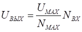 где Uвых - значение выходного напряжения, соответствующее цифровому коду Nвх, подаваемому на входы ЦАП. Uмах - максимальное выходное напряжение, соответствующее подаче на входы максимального кода Nмах.