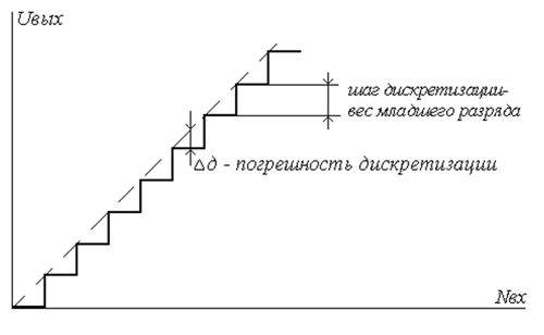 , называют коэффициентом цифроаналогового преобразования. Несмотря на ступенчатый вид характеристики, связанный с дискретным изменением входной величины (цифрового кода), считается, что ЦАП являются линейными преобразователями.