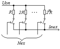 , где i - номер разряда входного кода Nвх; Ai - значение i-го разряда (ноль или единица); Ui – вес i-го разряда; n – количество разрядов входного кода (число разрядов ЦАП).